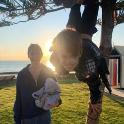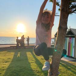 Pretend fire pit 🔥 games with Aunty Amy, tree climbing, jetty sand jumping, rock hopping, swarming seagulls and delicious fish!