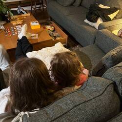 We mixed up the long straight with musical chairs. Jeff and Merry watched the Clone wars together and Nelly listened to a Veggie Tales song on repeat!