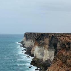 It was interesting to see that the Bight is not all sharp cliff edge. Here it rolled down to the sea with a rocky bushy edge and had a more familiar to us wave coastline with reef further out.