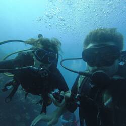 Zu Fuß ging es dann wenige hundert Meter bis zum Atauro Dive Resort, unsere Herberge für die nächsten Tage. Dort angekommen, dann der nächste Hammer... Die Zeitreise hat sich bestätigt. Zum ersten Eindruck kommen jetzt noch Plumpsklos mit Kakerlaken und Strom gibt es tatsächlich nur wenn de Generator läuft oder die Sonne scheint. Allerdings muss man zu all den Unanehmlichkeiten sagen dass wenigstens die Kulisse stimmt. Die Insel liegt einfach paradisisch und erinnert einen an den Film "Verschollen" mit Tom Hanks. Gegen Mittag machten wir noch direkt einen Tauchgang am Hausriff. Da es Lauras erster Tauchgang nach dem Kurs war, sind wir gespannt gewesen wie es wird, vor allem weil die Erwartungen an die Begebenheiten hier sehr hoch waren. Und wir müssen sagen dass wir keines Falls enttäuscht waren. Das Riff und das Erlebnis waren absolut unglaublich. Noch nie haben wir so viele verschiedene Fische und Korallen gesehen. Der Tauchgang hat die Unanehmlichkeiten und die Umstände die uns die nächsten Tage hier begleiten werden wieder wett gemacht und wir entspannten den restlichen Nachmittag am Strand.Read more