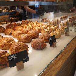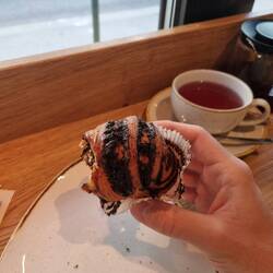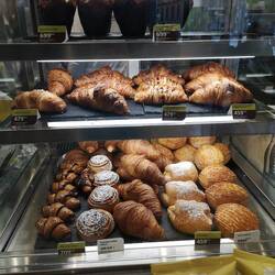 Locale meraviglioso e cornetto con il cioccolato avvolto nell'impasto e non con la solita noce di cioccolato zuccherato. 🥐