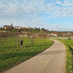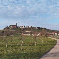 Wir gehen zum Startpunkt und es geht durch Weinberge hinauf, oberhalb des Kocher mit wunderbarem Ausblick entlang und wieder hinab nach Niedernhall.