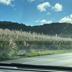 Auf dem Weg nach Santa Cruz einsame Parkplätze und herrliches Meer. Wiesen von Pampasgras am