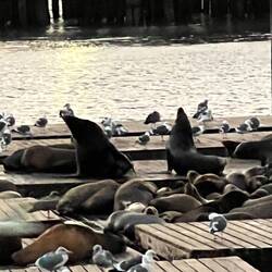 Für Stadt Monterey und Big Sur reichte die Zeit nicht mehr ( 9 Stunden bis LA!), aber wir fahren den 17-miles- drive in pacific grove und sehen kalifornische Seeotter mit Seetang ( Kelp).