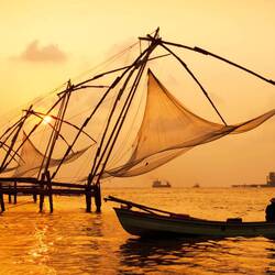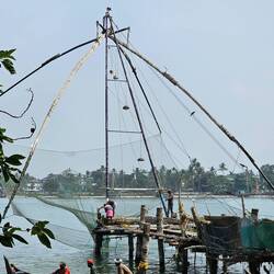 established on the Kochi shores between 1350 and 1450 AD. are a sight to behold. They appear suspended in mid-air and work off a cantilevered system with rock weights as they are raised and lowered to catch the local fish.