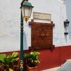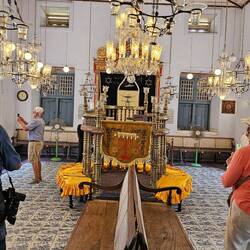 A short walk from there led us into a narrow street surrounded by colonial era buildings where we were surprised to see a sign board on the entry that read “Jew Street”, followed by a few more that pointed in the direction of Jew Town. The streets are lined with antique, textile, and handicraft shops. At the end of the street is Paradesi Synagogue, the oldest synagogue in India, built in 1568.