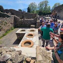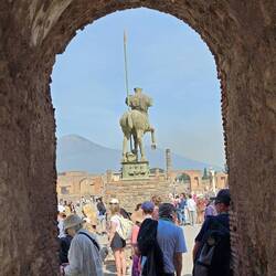 It was surreal to see Mt. Vesuvius looming large before us as we drove to Pompeii this morning to visit the ruins. Such an iconic landmark due to the cataclysmic eruption that consumed the city andもっと詳しく