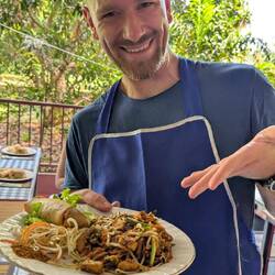 Der Elefantenbesuch bekommt einen eigenen Footprint und zum Kochkurs kann ich sagen, dass er super viel Spaß gemacht hat und ich jetzt mein eigenes Pad Thai machen kann. Mit einer schönen sauer scharfen Suppe als Vorspeise. Ein richtiger Schmackofatz 😍Leer más