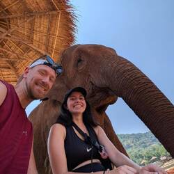 Was mich allerdings glücklich gemacht hat, ist wie sich die Menschen dort um die Tiere kümmern. Unmengen an freiem Auslauf, kein Anfassen der Tiere, kein füttern kein Baden. Jeder (!!!) Elefant hat seinen eigenen "Betreuer", der die Probleme des Elefanten kennt, sich den ganzen Tag um ihn kümmert und ihm sein Lieblingsessen reicht, wenn er es möchte. Eine wahnsinnig harte Arbeit all der Menschen, die dort arbeiten, aber auch super toll!
