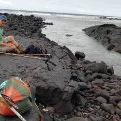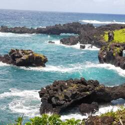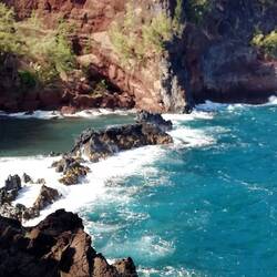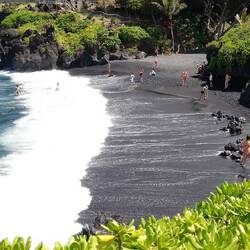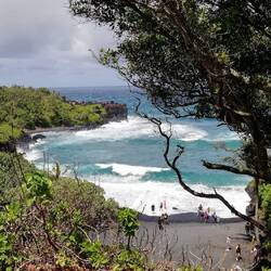Vom Wai'anapanapa Black Sand Beach geht der traumhaft schöne Trail über schwarze Lava, teils bewachsen mit satt grünen Naupaka zu Klippen, an die die Brandung donnert. WegenRead more
