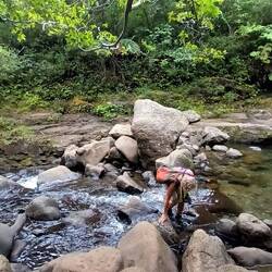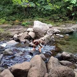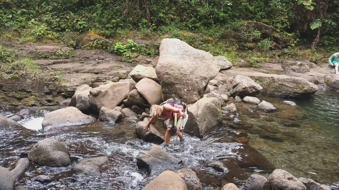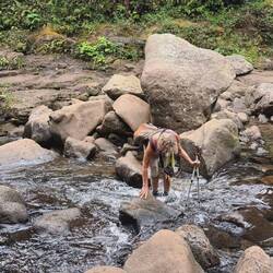 Mehrmals muss man den Bach überqueren. Nicht einfach, da glitschig und teils weite Abstände. Das erforderte höchste Konzentration.