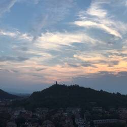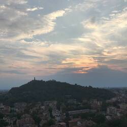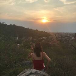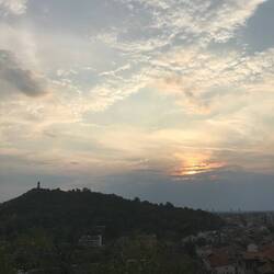 On a grimpé en haut de la colline centrale pour admirer le couché de soleil. On voyait pas grand chose à cause des nuages mais c'était quand même super bien. On a écouté de la bonne musique là.