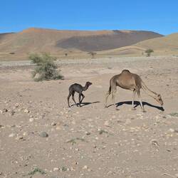 Dromedare bewegen gleichzeitig beide Beine einer Körperseite. Das erzeugt die typisch schwankende Bewegung, weshalb sie auch "Wüstenschiffe" genanntLæs mere