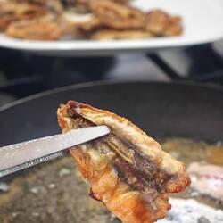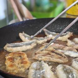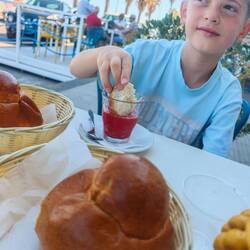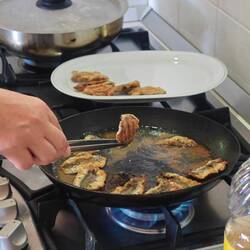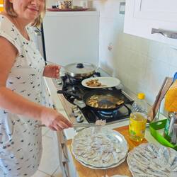Zum Mittag gab’s frische Sardellen und knackigen Salat. Und weil jeder gute Fisch schwimmen muss, haben wir uns noch ein kühles Glas Weißwein gegönnt – einfach lecker!"