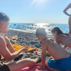 Nach unserem Besuch in Tindari sind wir Mittags noch eine Kleinigkeit essen gegangen. Danach ging es dann ins kühle Nass.... Das tat soooo gut!