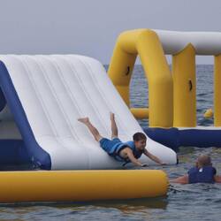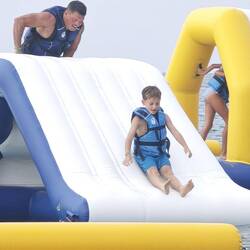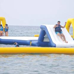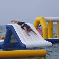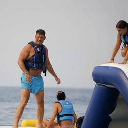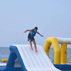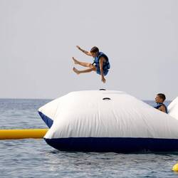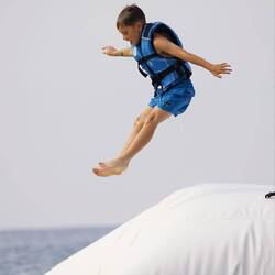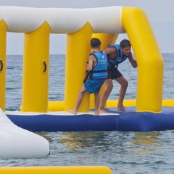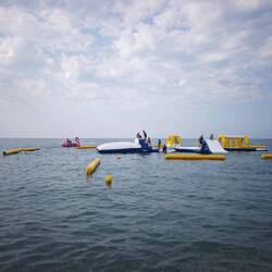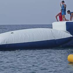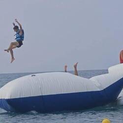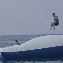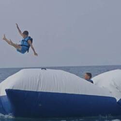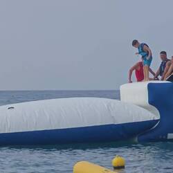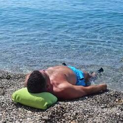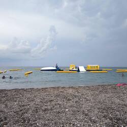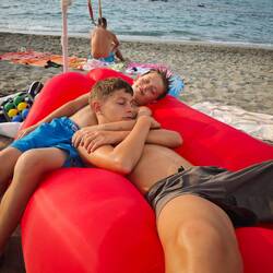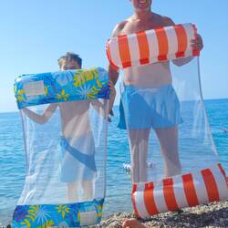 Highlight des Tages: Wassermatratzen vom Strandverkäufer – nach hartem Verhandeln ein echtes Schnäppchen… dachten wir.