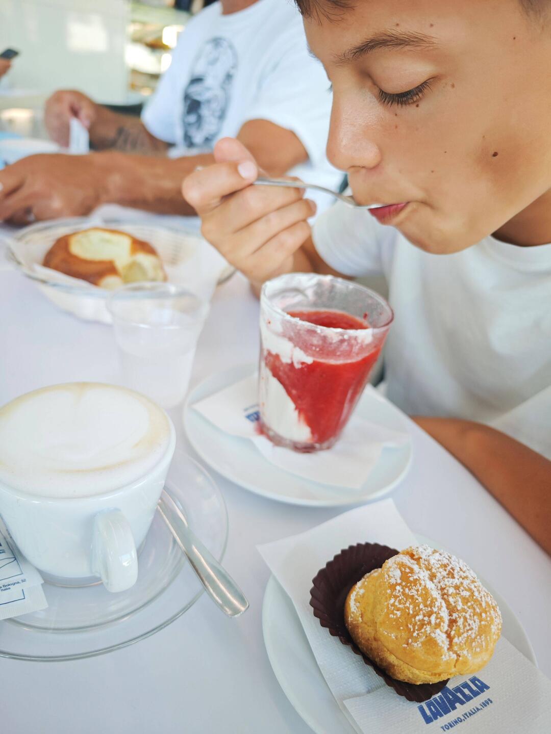 Heute ging’s erstmal zu einem leckeren Frühstück in der White Bar – frischer Cappuccino, knusprige Boconchino und natürlich Granita! Der perfekte Start in den Tag.