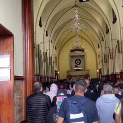 Today it was time to go see something again. We had decided to go visit a mountain called Monserrate which had a church on top we had been seeing everyday we’d been here. So it was finally time to go have a look at it. There are three ways to get up there: walking, cable car or funicular. Simons legs wasn’t feeling up for such a long walk yet, the cable car was closed when we got there, so the choice was easy: funicular it was. Bogotá itself is at 2.600 meters above sea level and once we were at the top of Monserrate we were at 3.100 meters and we could feel it. Breathing had gotten a bit more difficult. Everybody had decided to go to Monserrate on a Sunday so it was full of people and the church was having a service and playing music everywhere. It was really nice walking around up there and the view over the city was beautiful. We decided to also eat lunch there and sit and enjoy the view. After lunch we went back down and all of the sudden we could breath a bit better.