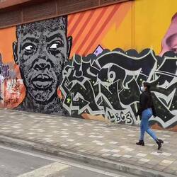Dansk: Så blev det sidste dag i Bogota for nu, men vi kommer tilbage igen om et par dage, når Simons mor og mormor kommer på besøg. Idag havde vi meldt os til en Graffiti tour, så vi kunne lære mere om alt den graffiti vi har set på gaderne hver dag. Det er en ret stor del af kulturen her i Bogotá, og vi ser graffiti på næsten alle gadehjørner. Det var en virkelig flot og spændende tur, hvor vi fik en masse historier bag graffitien. Vi hørte om en 18-årig dreng der blev dræbt af politiet under en demonstration tilbage i 2020, som nu blev malet som et symbol mod politivold. Vi hørte også om en mand, hvis søn ville forlade militæret, da han fandt ud af, hvor korrupte de var. Inden han nåede at forlade militæret, blev han dræbt i tjenesten (ifølge militæret selv). Faren var dog sikker på at det var militæret selv der havde dræbt sønnen, og han gik på gaderne for at kræve retfærdighed. En masse militærfolk kom ud og fortalte, at de selv var blevet tvunget til at gøre korrupte og ulovlige ting, men desværre døde faren af corona sidste år, inden han kunne nå at få gjort mere. Der var mange flere historier, men så ville jeg kunne skrive for evigt.