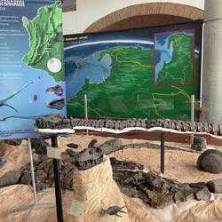 Da vi var færdige med Muiscaerne, var det blevet dinosaur-tid. Vi blev kørt til Centro de Investigaciones Paleontologicas (Center for Palæontoligiske Undersøgelser), hvor de har en masse fossiler. Villa de Leyva havde tidligere (for mange, mange millioner år siden) ligget under vand, så derfor fandt de mange fossiler af marine dyr. Vi så nogle virkelig flotte fossiler af store dyr, som det er ret vildt at forestille sig at de har svømmet rundt mere eller mindre der, hvor vi stod.