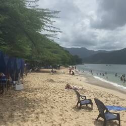 Igår stod vi tidligt op, så vi kunne komme afsted til Tayrona National Park til de åbnede klokken 8. Det lykkedes ret godt - vi tog bussen fra Santa Marta lidt i syv og stod ved indgangen til Tayrona omkring klokken 8. Det er meget turistet at tage herhen, og det kunne man mærke med det samme. Så snart vi kom ud af bussen stod der en dame klar til at hjælpe. Vi ville gerne sove en nat i parken, og det kunne hun hjælpe med at reservere. Hun viste os en masse forskellige muligheder og det viste sig ikke at være meget dyrere at få en hytte istedet for et telt, så vi gik med hytten. Så skulle vi over og købe indgangsbilletter, købe en eller anden obligatorisk forsinkring og tage en bus til starten af vandreruten. Så kunne vi endelig starte med at gå til stranden. Vi havde fået at vide at det tog omkring halvanden time til den første strand og 2 1/2 time til den sidste strand. Vi startede ud med at gå i en kø af mennesker, fordi colombianerne åbenbart har noget ferie de her dage, så alle havde bestemt sig for at tage på stranden. Det tyndede ud efter noget tid, og vi kunne gå mere i vores eget tempo. Efter ca. 1 1/2 time kom vi til vores hytte, hvor vi kunne ligge vores tasker. Så gik vi videre, og den første strand var virkelig flot så vi bestemte os for at blive der, så vi havde tid til at nyde stranden. Vi brugte resten af dagen på stranden og svømmede i bølgerne. Vi kom tilbage inden det blev mørkt og prøvede at sove i junglevarmen i den lille hytte.