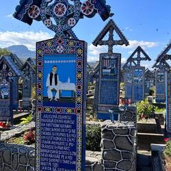 Rumänien 2023TravelerShow tripAdd to bucket listRemove from bucket listShareDay 28Tuesday, October 10, 2023 at 2:00 PM ☀️ 12 °C Altitude: 275 m RomaniaSăpânţa47.97134, 23.69512147°58’17” N 23°41’42” ECimitirul Vesel - Der lustige Friedhof October 10, 2023 in Romania ⋅ ☀️ 12 °C 1 like Show trip