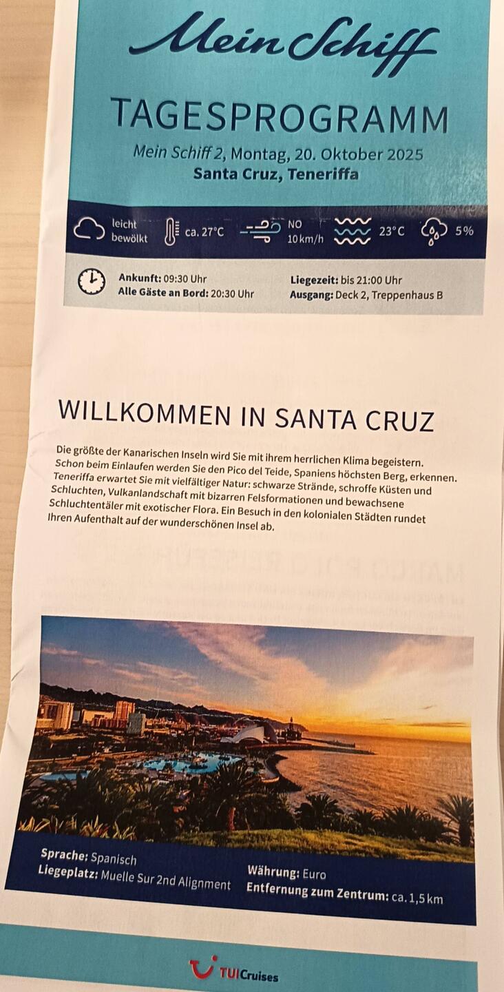 ΠΡΡΠ΅ΡΠ΅ΡΡΠ²Π΅Π½Π½ΠΈΠΊAuf Wiedersehen Teneriffa π Auslaufen der MS2β΄οΈ