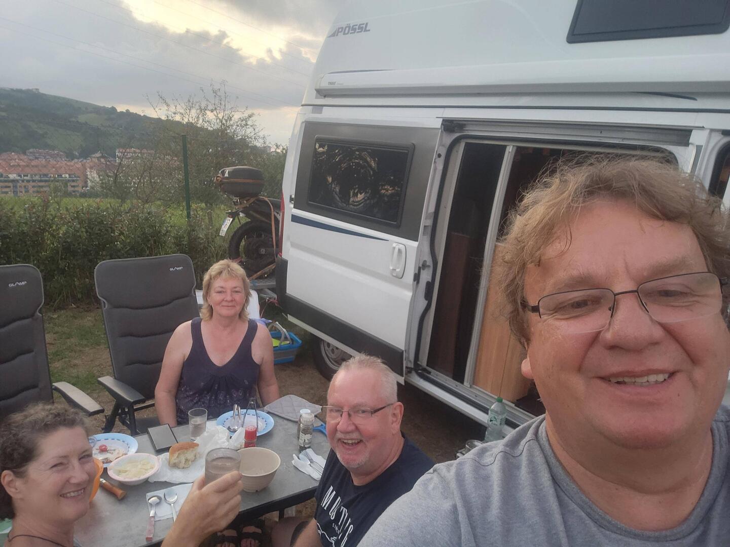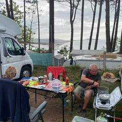 Auf nach Görlitz, nähe Bilbao. Strand etwas touristisch aber ganz schön. Gehen abends essen am Campingplatz. Müssen aber bis 19 Uhr warten. 😧