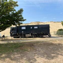 Zum Ende der gemeinsamen Reise Entspannung am Strand. Wetter nicht ganz so toll. Aber man kann noch baden und ein paar gemütliche Tage verbringen. Von hieraus treten Biene und Haasi die Heimreise an.