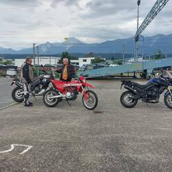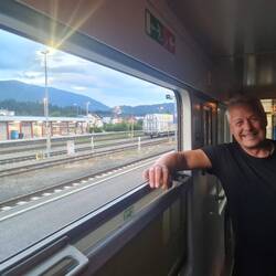 Über die Großglockner Hochstraße fahren. Wir nach Villach. Die Motorräder werden verladen . Der Zug geht erst um 22 Uhr. Wir lassen uns Bier und Pizza bringen. Die Zugfahrt geht quer über den Balkan.