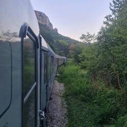 Sehenswerte Zugfahrt über den Balkan. Manchmal im Schritttempo. Ein optischer Eindruck der wechselnden Gegenden. Nachts nervige Grenzkontrollen in Serbien. Nette Bekantschafter und Unterhaltungen.