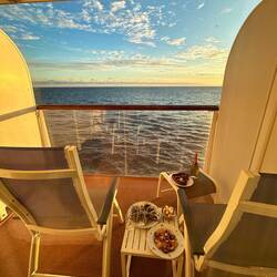 An einem Seetag passiert nicht viel. Dafür ist er ja auch da. Ausschlafen , frühstücken, technische Fragestunde mit dem Kapitän, Sonnendeck. Und essen - es gibt ja immer irgendwo etwas zum Essen 😉