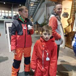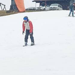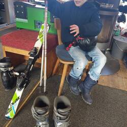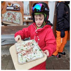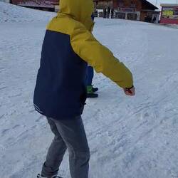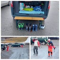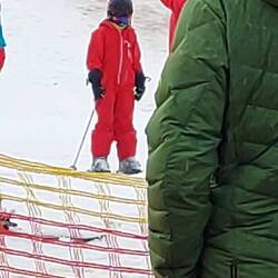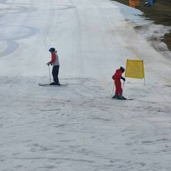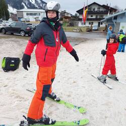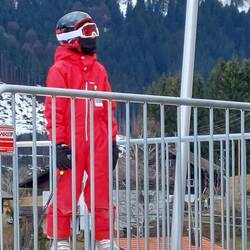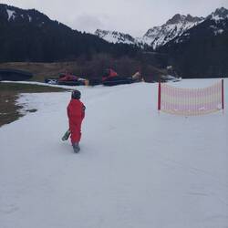 Finn zeigt Papa wie das den so geht...Während die Großen ab zur Piste zum Worm up düsen.