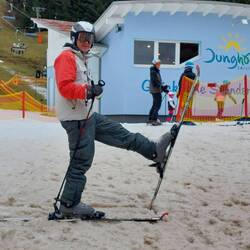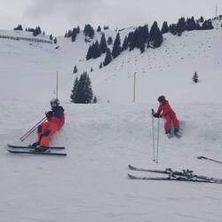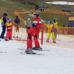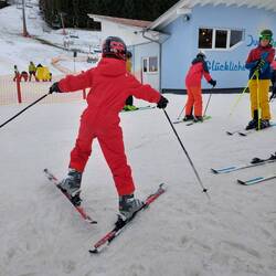 ... aber erst bitte noch zur Toilette, und dann der nächste zur Toilette, und dann gingen die ersten zwei doch schon alleine auf die Piste.
