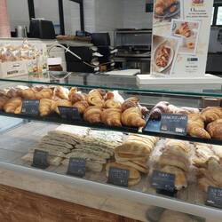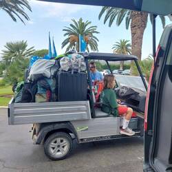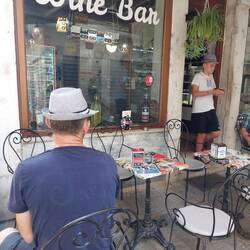 Ohne Gepäck auf zu unserer Frühstücksbar... Paul und ich sind noch schnell zum Bäcker - Kekse organisieren!