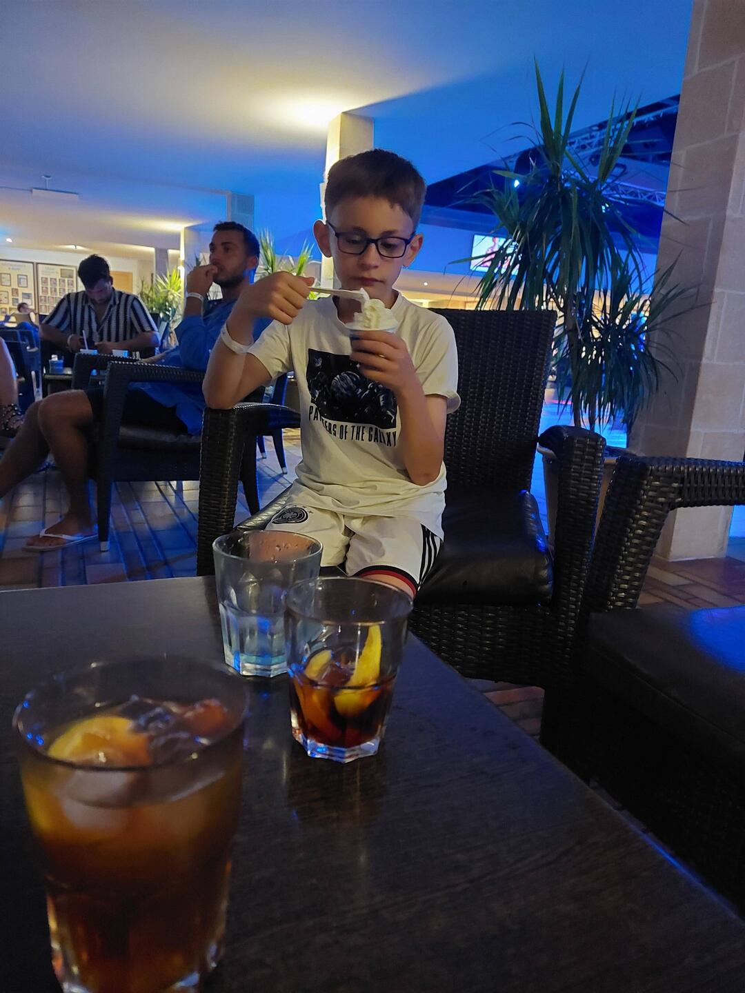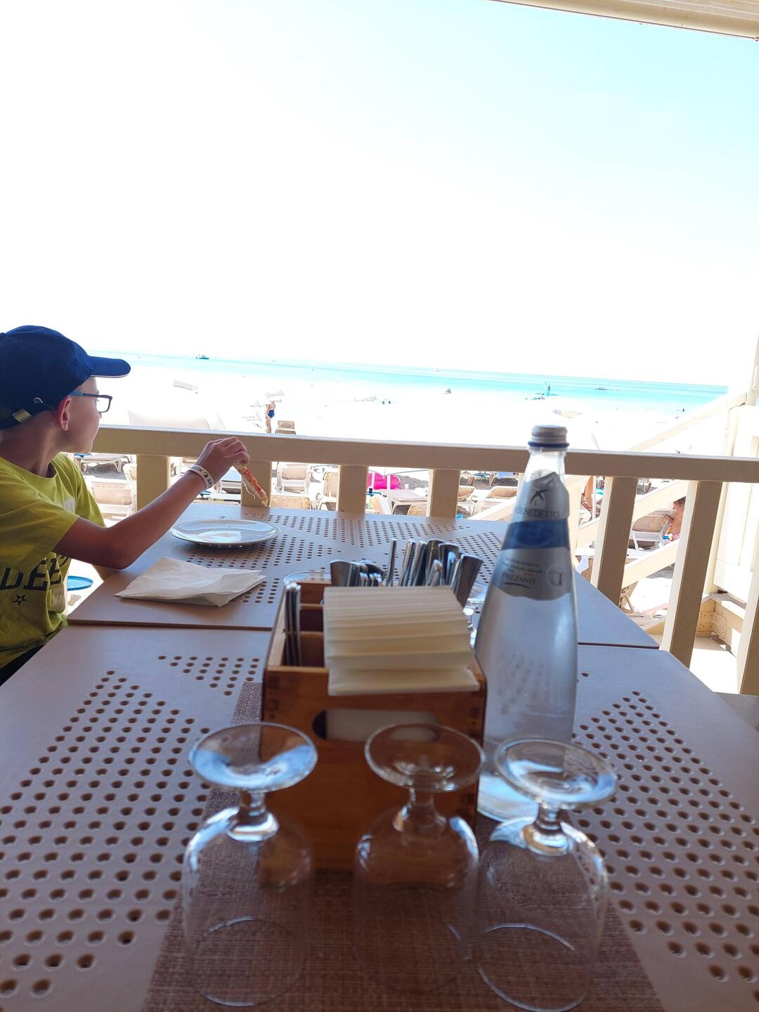 ... nettes Essen... finn hatte mega spass...und die jungs zocken auf den liegen am Pool.... und lauschen der Musik