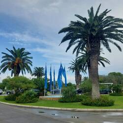 Eigentlich war ausschlafen für alle angesagt... aber 7:30 waren alle in Badesachen beim frühstücken. Der Strand ruft!