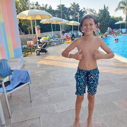 Die Grossen gingen ins Bett und Finn war mit uns am Pool.
