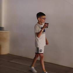 Finn war schon bei schminken und umziehen und hat im Kinderlokal gespeist.