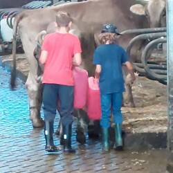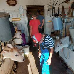 Nach unserer Wanderung ging es dann sofort ab in Stall. Milch holen, helfen was noch zu machen war und endlich 🚜 Traktor fahren.