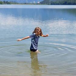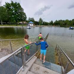 Eigentlich wollten wir mit vielen anderen anwesenden am Steg auch eine Schiffahrt auf dem Kochelsee unternehmen. Aber Montags keine Fahrt. Naja dan mussten die Kids doch in Benediktbeuern mit mirLes mer