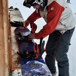 Matze schreibt noch schnell sein Board um und dann nichts wie los zum Berg.