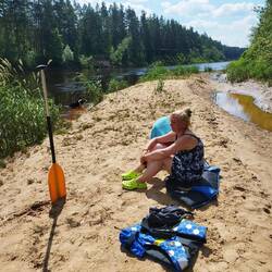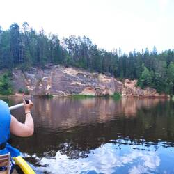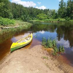 Heute machen wir die Kanu Tour über die Gauja. Um 10 Uhr werden wir Fluss aufwärts ausgesetzt 😉