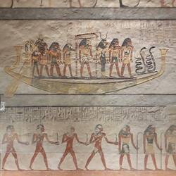 Journée sur la rive Ouest du Nil, où se trouve la plus grande partie des sites archéologiques. Visite du temple mortuaire de Hatshepsut, une femme phararon (pharaonne?) du 2e millénaire avant JC. Chaleur écrasante dans la Vallée des rois. Les peintures des tombes sont dans un état remarquable. Bon, on ne comprend rien à toutes ces petits hiéroglyphes qui recouvrent les murs... mais ça fait un petit effet déco sympathique. Pour terminer on cherche de l'ombre au magnifique temple de Medinet Habu et on retraverse le Nil en bateau. A la fin c'était un peu le bazar, le guide a failli étrangler un touriste chinois qui était pris dans une frénésie photographique interminable pile au moment de partir et des Américains qui voulaient absolument aller au McDo. Un Egyptien expliquait à des Coréens qu'ici les gens aimaient deux choses : le hashish et la bière. Ah bon?Read more