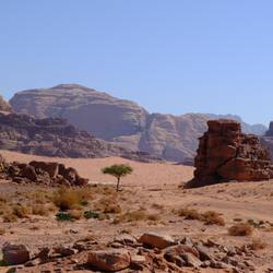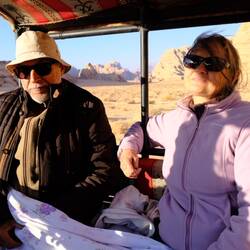 Nous partons en jeep visiter quelques sites du très cinématographique Wadi Rum. Les roches et sables blancs, rouges et bruns y dessinent des panoramas de folie. Nous refilons la Harissa à l'un deLeer más