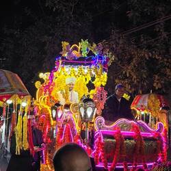 In the evening we went to Dhun's cousin Chhaya's for dinner (Chhaya is an amazing warm, lovely lady who we spent a lot of time with when we last came). While we were there a wedding procession went past so we rushed to the street to take pics. The procession was the groom being taken to the bride's family before the actual wedding.