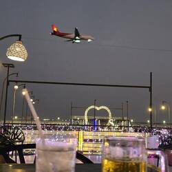 First night in Thailand and we're staying at an airport hotel in Bangkok as flying to Phuket in the morning. Rooftop terrace bar; live music and planes coming into land every few minutes !!!