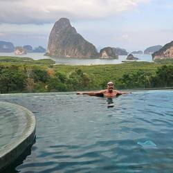 Flew down to Phuket then a driver took us up to Samet Nangshe, beautiful views over the islands - really like nothing else we've seen. View from the room (villa half way up the hill), pool andRead more