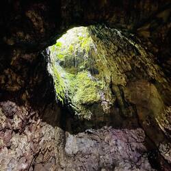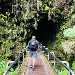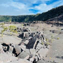 Zunächst bin ich alleine los und durch den Jungel gelaufen, bis ich schließlich abstieg hinein in die schwarze Lavalandschaft. Von oben sah es nur halb so spektakulär aus, unten stellte sich dann die „Wanderung“ als halbe Kletterpartie raus. Ich begegnete 3 Amerikanern und als wir uns einigten, dass das vulkangeprägte Tal stark an Mordor erinnert und wir das Gefühl haben, jeden Moment einen Ork anzutreffen, war die vorübergehende Freundschaft besiegelt😂 wir schlugen uns gemeinsam durch schwarzes Gestein, staunten über die Pflanzen, die selbst hier etwas Leben zurückbrachten und stiegen anschließend wieder durch den Jungel hinauf. Oben angekommen passierten wir noch eine „Lavatube“ (Höhle) und kamen dann erschöpft, aber glücklich an den Autos an, wo sich unsere Wege wieder trennten.