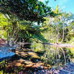 Auf Empfehlung an der Rezeption machte ich mich auf zum Iao Valley State Monument, wo ich die herrliche Natur erkunden konnte und anschließend erstmal im Fluss mit den Einheimischen badete und frischeres Wasser hab ich wohl selten gesehen, es war herrlich 😁